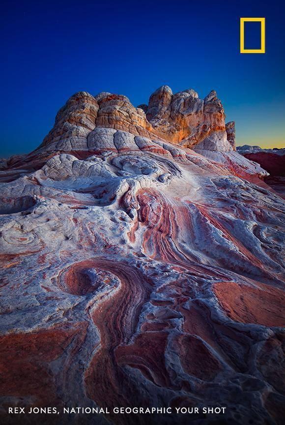 In an area of Arizona's Vermillion Cliffs National Monument known as "White Pocket," Your Shot photographer Rex Jones captured these colorful, swirling sandstone formations https://on.natgeo.com/2z3RrwB pic.twitter.com/GpkGYYQAMa